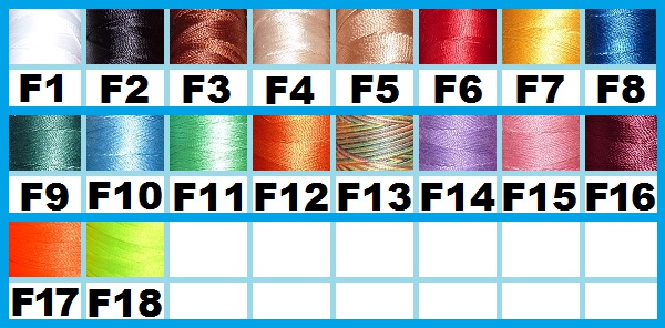 e) welche Schrift- Fadenfarbe