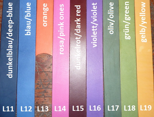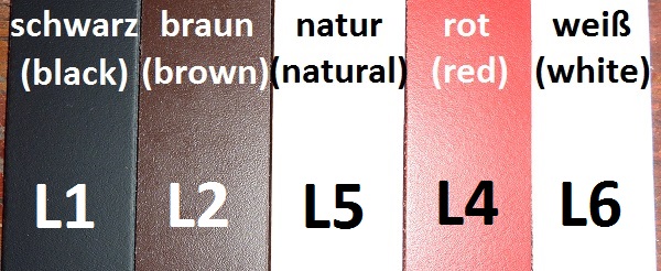 Die Halsbänder teilen sich in 5 Farbvarianten, in Oberleder und Unterleder, auf: