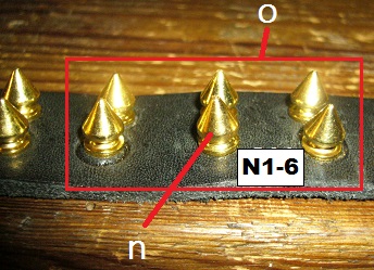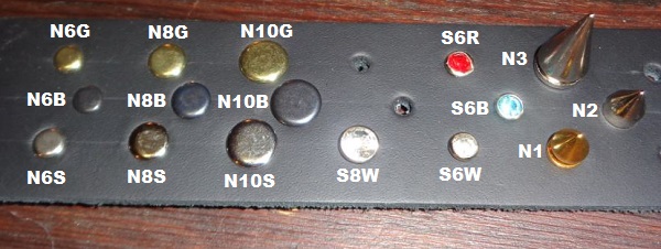 - Stachelnieten messingfarben (SN1), silbern (SN2), oder flach (SN3)